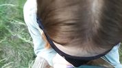 Описание:Парочка решила прогуляться на природе, где красивая девушка захотела сделать приятно приятелю ротиком. Русская блондинка в маске просто становится на коленки и принимается за дело.