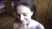 Малышка с задорными сиськами пососала хуйца и приняла в ротик камшотик