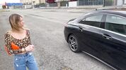 Ссыкуха сбила цену на тачку, предложив очкастому дилеру свои рот и пизду