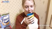 Дал в ротик двоюродной сеструле с красивыми титьками прямо на кухне
